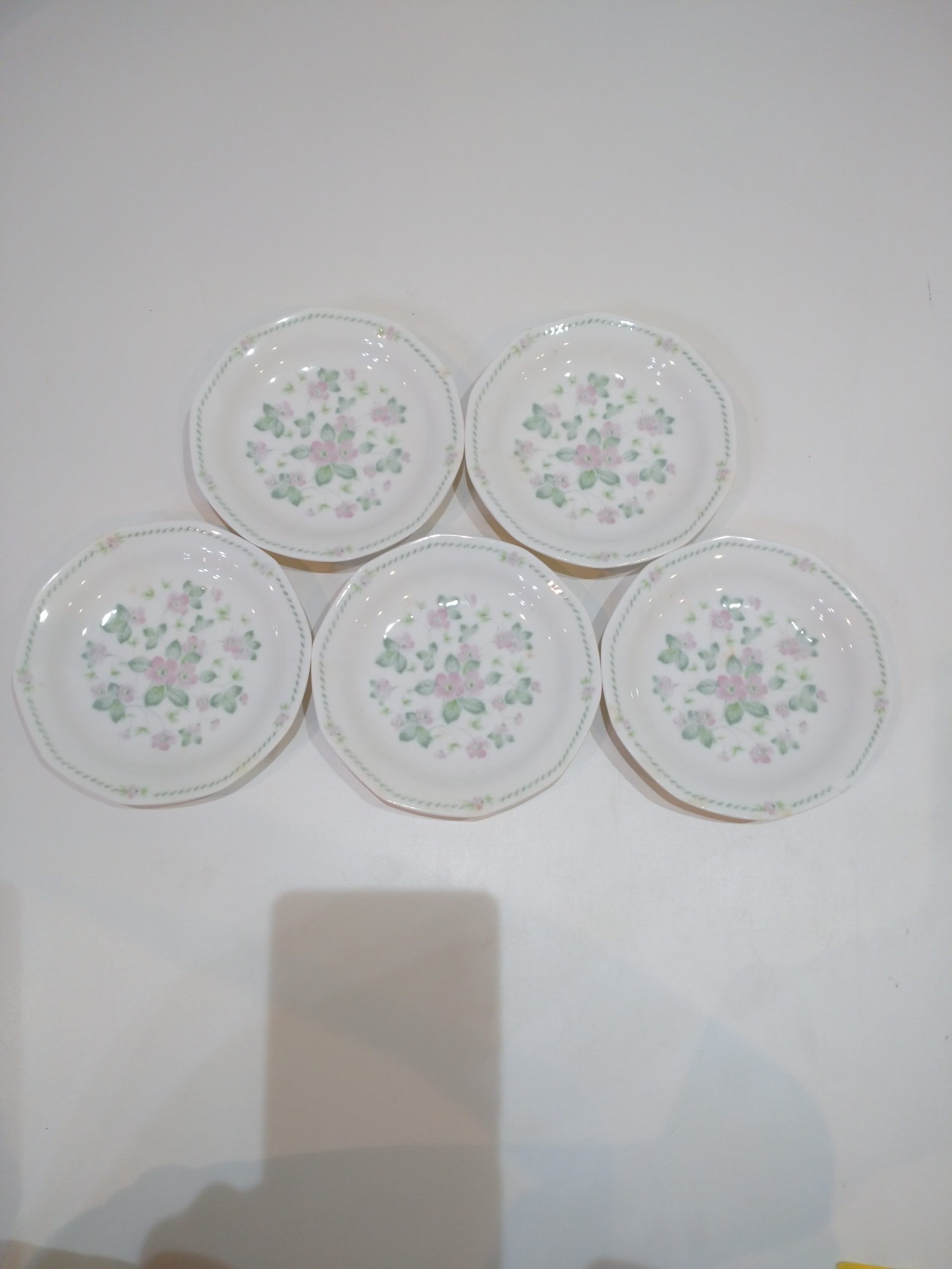 小皿5点セットになります。 どのお皿も少々の汚れがあります。 直径:約12㎝ 高さ:約2㎝
